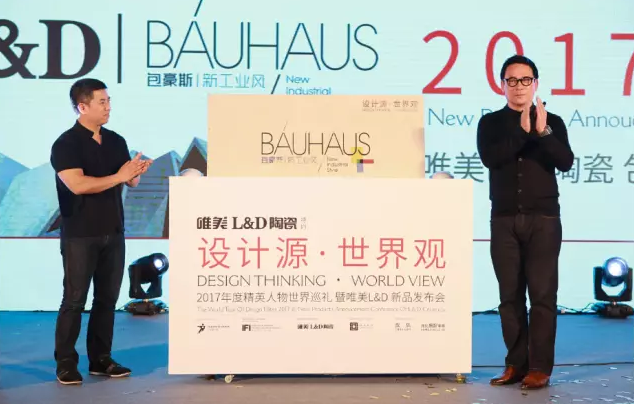 在陳丁榮先生精彩的分享之后,由梁志天先生和唯美L&D陶瓷事業部總經理蘭盛標先生共同為“包豪斯·新工業風”做了揭幕儀式,并由梁志天先生在新品上進行簽名留念,這標志著“包豪斯·新工業風”在成都的正式起航。